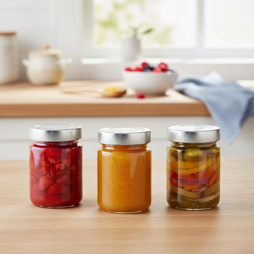 La série de produits « Verre rond Deep Twist Off » de Flaschenland comprend des contenants en verre de haute qualité spécialement conçus pour des usages polyvalents de stockage et de conservation. La caractéristique principale de cette série est l’innovant col Deep-Twist-Off (DTO 58), qui garantit une manipulation sûre et facile. Les verres ronds « Summertime » de 253 ml se distinguent par leur qualité de matériau robuste et durable. Ils sont résistants au froid, à la chaleur, compatibles micro-ondes ainsi qu’au four, ce qui les rend extrêmement polyvalents. De plus, ils sont compatibles lave-vaisselle, assurant un nettoyage facile. Le verre transparent permet une présentation attrayante du contenu, tandis que la forme ronde offre un espace de rangement optimal.