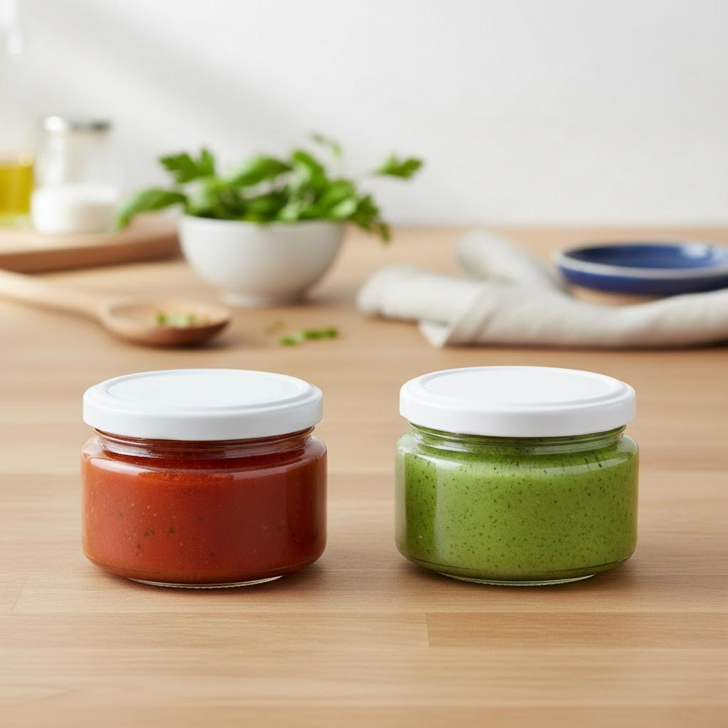 La série de produits « Flacon rond » de Flaschenland comprend des flacons ronds plats de haute qualité de 30 ml avec une ouverture pratique à vis (TO 43), caractérisés par leur polyvalence d’utilisation et leurs propriétés matérielles robustes. Ces contenants en verre sont spécialement conçus pour le stockage sûr et la présentation d’aliments tels que la confiture, le pesto ou d’autres produits en conserve. Les flacons ronds sont fabriqués en verre résistant à la chaleur et au froid, compatible à la fois avec le micro-ondes et le four. Ils sont donc idéaux pour de nombreuses applications – du chauffage et de la congélation à la cuisson. De plus, ces verres sont compatibles au lave-vaisselle, ce qui facilite leur nettoyage et leur réutilisation.