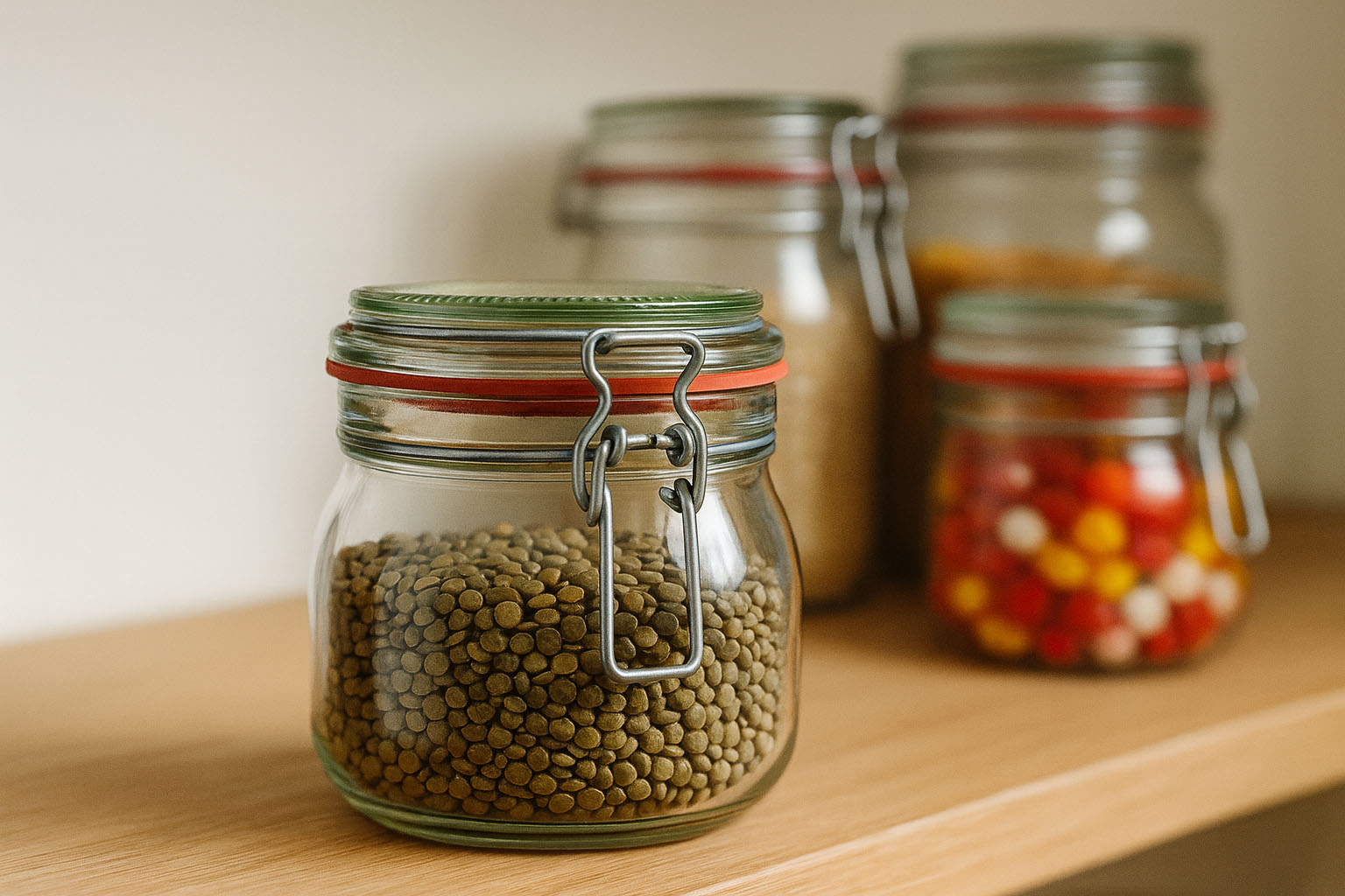 Grâce à leurs multiples usages, les bocaux à fermeture à levier conviennent idéalement à la mise en conserve et à la conservation de spécialités maison telles que confitures, chutneys ou légumes marinés. Ils offrent également une solution hygiénique et élégante pour le stockage d’aliments secs comme les céréales, la farine ou les légumineuses.
