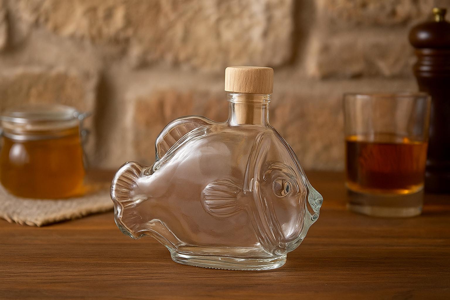 Bouteilles-et-Bocaux Flacon en verre 200 ml « Poisson », ouverture : liège