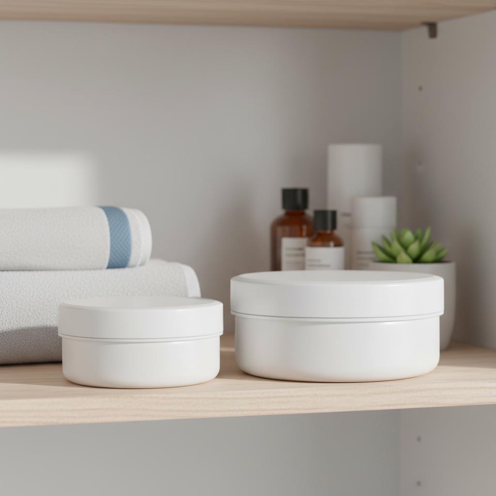 La série de produits "White Line" de Flaschenland comprend des pots en plastique de haute qualité en polypropylène (PP) robuste, d’un blanc élégant, dotés d’une ouverture pratique à bouchon à vis. Ces contenants sont spécialement conçus pour le stockage sécurisé de crèmes et de produits cosmétiques, offrant une solution fiable pour diverses applications. Les pots en plastique de la gamme "White Line" ont une capacité de 125 ml et font partie de la ligne de pots en PP. Ils se distinguent par leur matériau résistant au froid et aux UV, protégeant ainsi parfaitement le contenu des influences extérieures. De plus, ces pots sont compatibles avec le lave-vaisselle, ce qui facilite un nettoyage simple et hygiénique. Leur forme ronde permet un rangement peu encombrant.