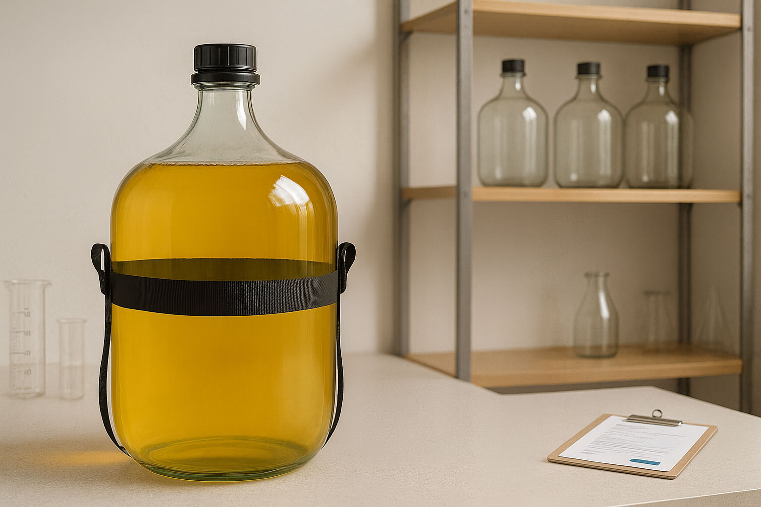 La bouteille ballon « High End » allie une finition de première qualité à une sécurité et une fonctionnalité maximales. Avec son volume généreux de 25 litres, elle offre une solution idéale pour le stockage et le transport de liquides sensibles. Sa forme ronde assure une répartition homogène du contenu, tandis que l’emballage antichute homologué UN répond aux normes de sécurité les plus strictes. Le bouchon original noir garantit une étanchéité fiable et protège contre tout accès non autorisé. De plus, des sangles textiles larges de 48 mm avec poignées en plastique assurent une manipulation confortable, même lorsque la bouteille est pleine. Parfaite pour le stockage et le transport sécurisés de spiritueux, de produits chimiques ou d’autres liquides sensibles – la bouteille ballon « High End » établit de nouvelles références en matière de qualité et de sécurité.