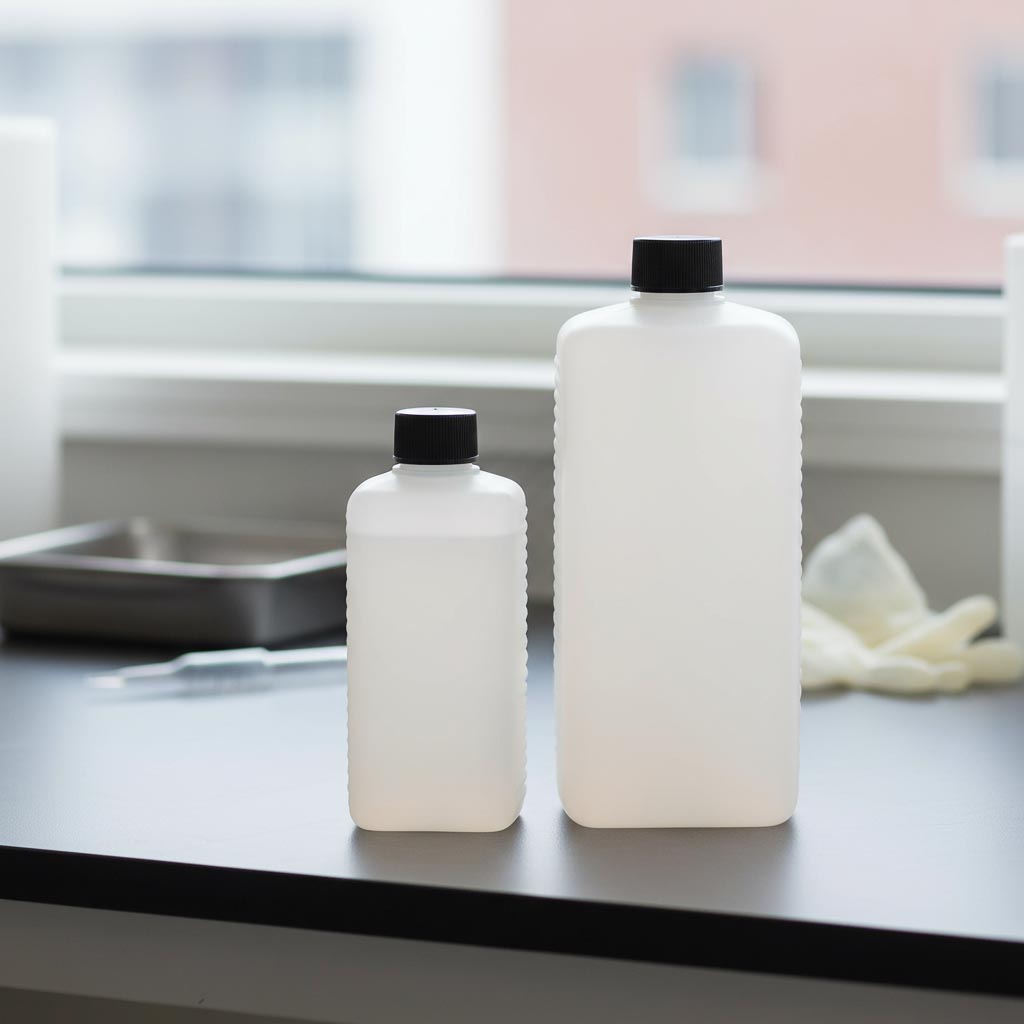 La bouteille carrée en PE de Flaschenland est une série de contenants en plastique robustes et polyvalents, caractérisée par sa forme rectangulaire et sa qualité supérieure en HDPE. Avec une capacité de 1 000 ml et un goulot standardisé DIN 25 EPE, cette gamme de produits offre une fonctionnalité optimale et une manipulation facile. Les bouteilles bidons sont fabriquées en plastique HDPE naturel, particulièrement résistant au froid, ce qui les rend adaptées aux conditions de stockage exigeantes. La forme rectangulaire permet un rangement peu encombrant et un empilement efficace. De plus, les bouteilles sont compatibles avec le lave-vaisselle, assurant un nettoyage simple et une réutilisation pratique. Le goulot standardisé DIN 25 EPE garantit une fermeture sécurisée et une compatibilité avec les bouchons et dispositifs de dosage courants.