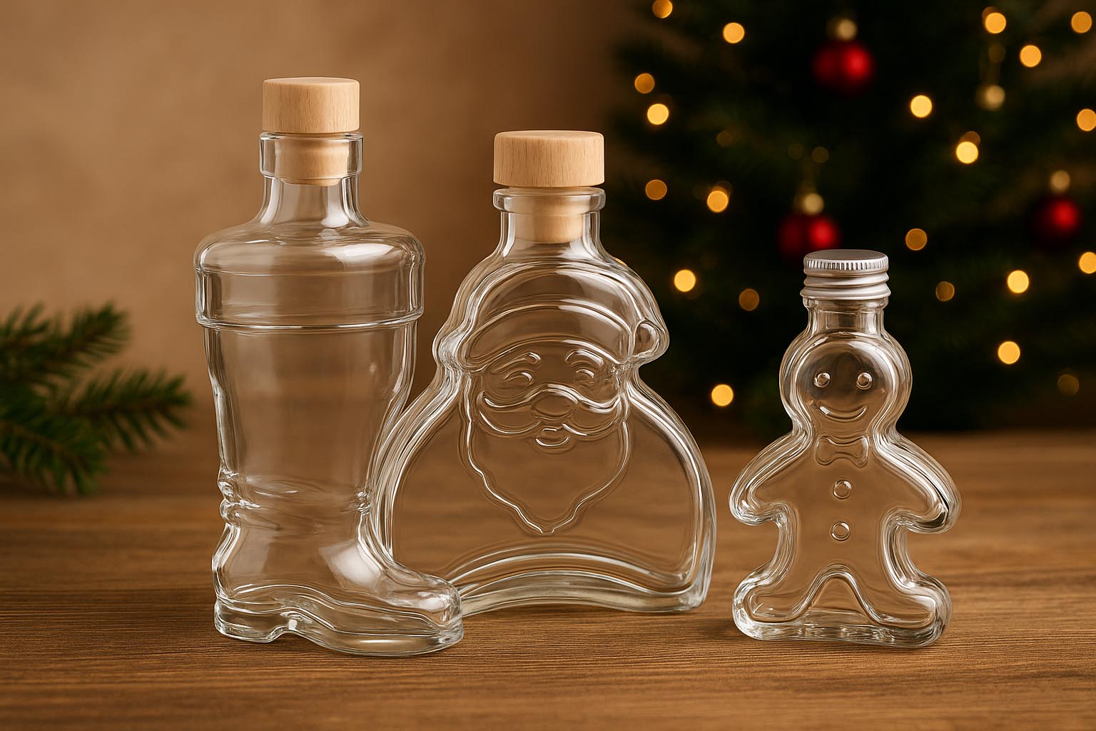 Nos bouteilles spéciales variées telles que "Eva" et "Adam", « cochons porte-bonheur », "sapin de Noël" et « bonhomme en pain d'épices » incarnent une élégance intemporelle et établissent des standards en matière de qualité et de design. Chaque bouteille séduit par un motif caractéristique, souvent conçu avec soin, et une finition haut de gamme qui convainc tant les professionnels que les particuliers ayant le sens de l’esthétique. Les contenants sont disponibles en différentes tailles, de 40 ml à 500 ml, et offrent avec un bouchon en liège, en PP ou un bouchon à bascule une solution élégante pour le stockage sûr et hermétique des spiritueux, liqueurs et autres boissons.