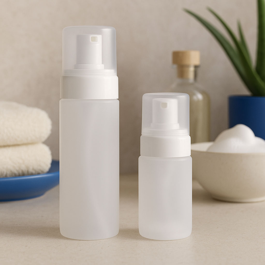 La série « Foamer » offre une solution pratique et de haute qualité pour une mise en mousse simple et contrôlée de différents liquides. Associée au distributeur mécanique de mousse disponible séparément, elle garantit un dosage uniforme et économique, idéal pour les produits cosmétiques et hygiéniques. Le système de remplissage par le haut bien conçu permet un rechargement facile, tandis que le filetage assure une manipulation sécurisée. Grâce à sa base ronde et à sa forme cylindrique, la bouteille tient confortablement en main et présente un design moderne et fonctionnel. Avec une capacité de 100 à 150 ml, le « Foamer » est le choix parfait pour les produits innovants nécessitant une consistance mousseuse.