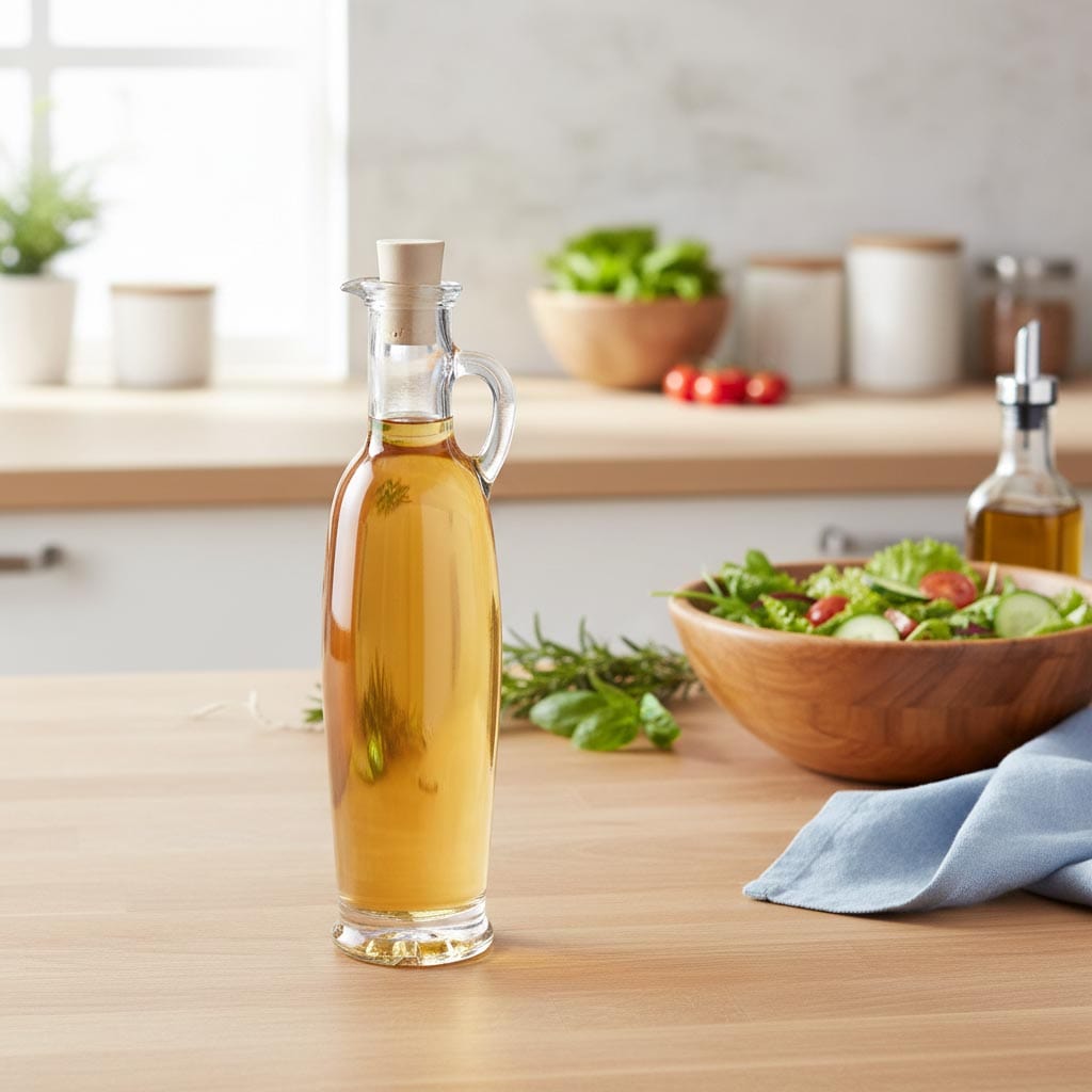 La série de produits « Flacon à bec » de Flaschenland comprend des récipients en verre de haute qualité, spécialement conçus pour le stockage et le dosage de liquides tels que le vinaigre et l’huile. Avec leur ouverture caractéristique en bec verseur et leur bouchon en liège pratique, ces bouteilles allient fonctionnalité et design intemporel. Le flacon en verre de 250 ml 'Simona' se distingue par son matériau en verre robuste, résistant à la chaleur et au froid, compatible avec le lave-vaisselle, le micro-ondes et le four. Ces propriétés polyvalentes rendent la bouteille particulièrement durable et facile à entretenir. La forme ronde du récipient assure une prise en main agréable et un stockage sûr. Le bouchon en liège offre une étanchéité fiable tout en permettant un dosage simple des liquides.