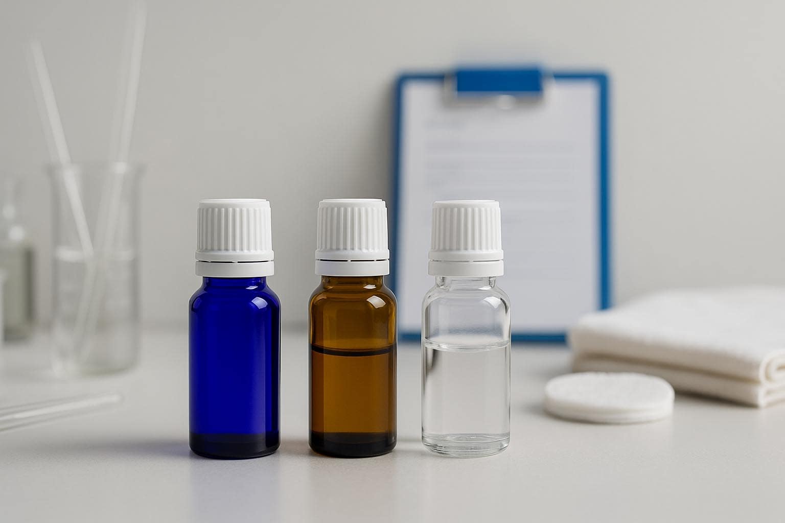 Flacon médical bleu de 5 ml : Ce flacon en verre attrayant est doté d’un filetage compatible avec les bouchons DIN-18, ce qui le rend idéal pour les liquides aqueux, mais aussi pour les globules, etc. Compatible notamment avec un insert compte-gouttes et un applicateur.