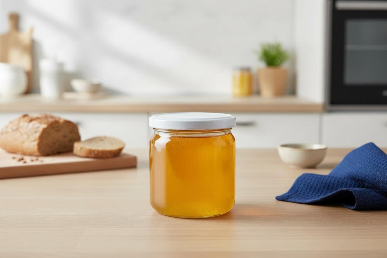 Bocal à miel de 388 ml – transparent, élégant et durable