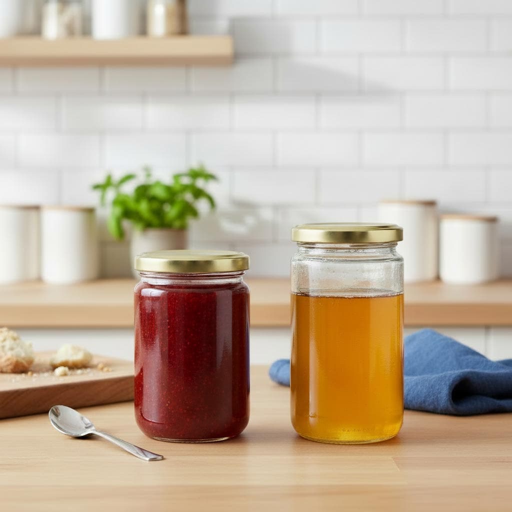 La série de produits « Verre rond » de Flaschenland comprend des verres ronds hauts de 45 ml de haute qualité avec une ouverture pratique à vis (TO 38), se distinguant particulièrement par leur polyvalence et leur robustesse. Ces contenants en verre sont spécialement conçus pour le stockage sûr et élégant d’aliments tels que les confitures. Les verres ronds sont fabriqués en verre résistant, supportant le froid, la chaleur ainsi que le micro-ondes et le four. Ils conviennent donc parfaitement à de nombreuses utilisations – de la mise en conserve et de la congélation au réchauffage et à la cuisson. De plus, ces verres sont compatibles avec le lave-vaisselle, garantissant un nettoyage facile et hygiénique. Avec une capacité de 45 ml et une ouverture standardisée à vis (TO 38), ils offrent un stockage sécurisé.